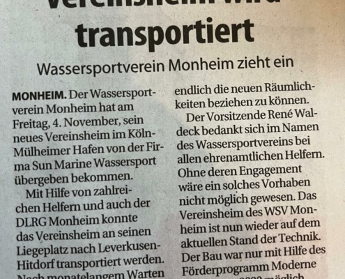 Beim WSV fand im Rahmen des Projekts „Sportplatz Kommune“ der Stadt Monheim ein SUP-Schnupperkurs für Kinder der 6. und 7. Klassen statt. Nach einem Theorieteil zu den Themen Sicherheit und Grundlagen im SUP Sport ging es auf das Wasser. Alle 10 Kinder konnten bereits in der ersten Stunde auf dem Stand up Paddling mit einem […]